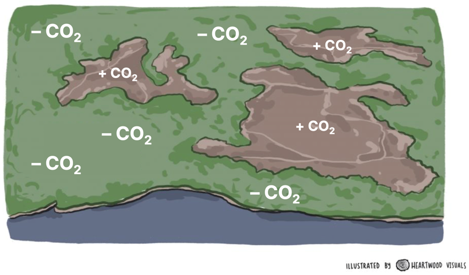 図7. 書類上では森林の炭素貯蔵量全体の変化しか示されず、伐採による排出は覆い隠されている