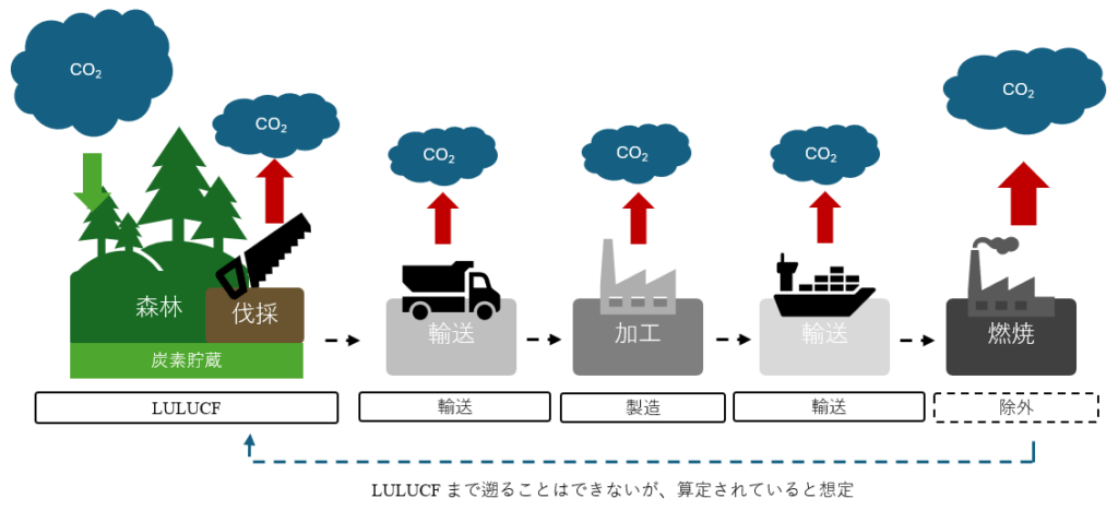 バイオマスの燃焼時のCO2排出をゼロと扱っている